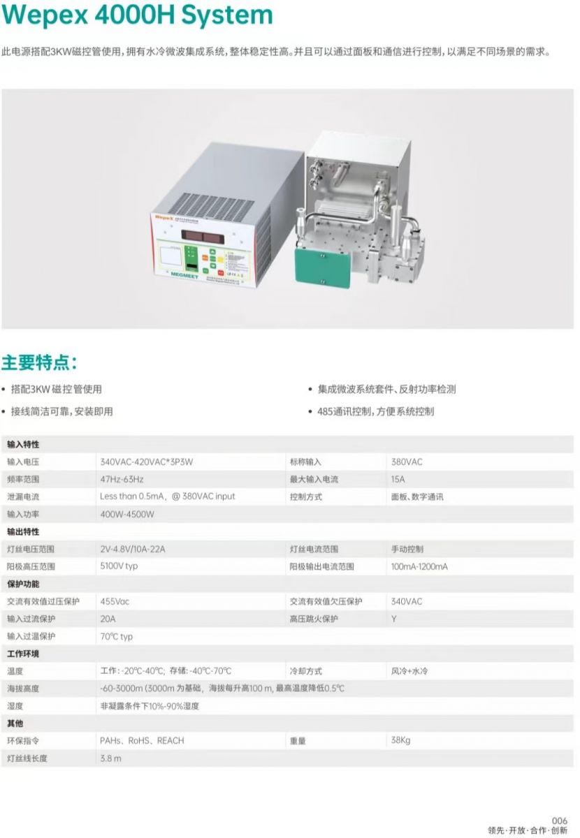 此電源搭配 3KW 磁控管使用,擁有水冷微波集成系統,整體穩定性高,并且可以通過面板和通信進行控制,以滿足不同場景的需求。